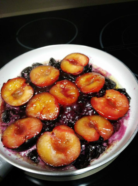 LO PRIMERO QUE HACEMOS ES CALENTAR LA MANTEQUILLA CON AZÚCAR Y HACEMOS UN CARAMELO AÑADIMOS LAS CIRUELAS QUE LAS HEMOS LAVADO Y QUITADO EL HUESOY AÑADIMOS CIRUELA PASA Y LO HACEMOS DURANTE 15 MINUTOSY LO PONEMOS EN UN BOL PARA EL HORNO QUE LO TENEMOS PRECALENTADO Y LO TAPAMOS CON LA MASA DE HOJALDRE Y PINTAMOS CON HUEVO Y AL HORNO DURANTE 15 MINUTOS Y SERVIMOS